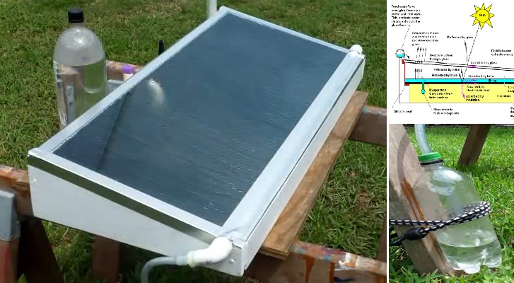 The solar water distillation system comprises a box-type design with heat absorbent black coating in the inner chamber. Water is poured into this chamber, which the sun heats up and it starts to evaporate. The steam condenses on the glass panel and the now ‘clean’ water trickles down and out into the collecting vessel. It is portable and can be a life saver in such areas where clean water sources are non-existent.